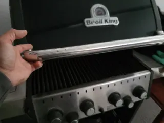 George Foreman Grill - Parrilla Eléctrica, Barbacoa Interior y Exterior, 15 Raciones, Bandeja de Goteo Extraíble, Revestimiento Antiadherente, Incluye Tapa, 2400 W, 5 Temperaturas, Negro - 22460-56 Faltan los tornillos y el manómetro, pero todo esto se puede comprar sin ningún problema