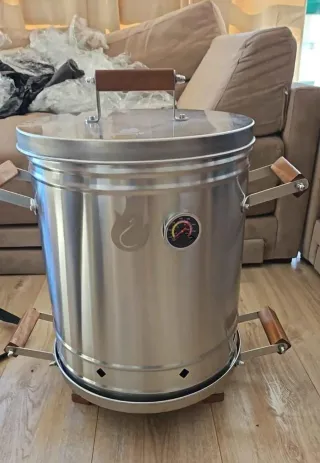Asador tipo barril de alta calidad, ideal para asados profesionales. Cuenta con un termómetro integrado para un control preciso de la temperatura. Fabricado en acero inoxidable 304, resistente y duradero. Capacidad para hasta 7kg de carne, ideal para asados de hasta 15 personas. Incluye parrilla, ganchos, termómetro y todos los accesorios. Precio negociable. Oportunidad 🔥