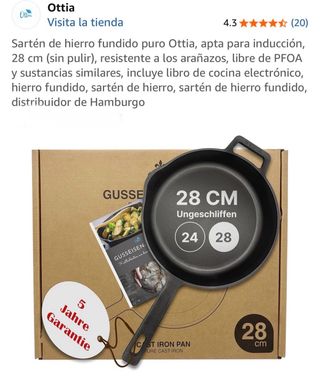 Nueva a estrenar Extremadamente resistente y duradera: esta sartén de hierro fundido es un verdadero punto culminante de cocina. Dura toda la vida, mejora con cada uso y proporciona resultados incomparables. Para cualquier cocina. En cualquier fuego, tanto en interiores como en exteriores. Ya sea eléctrica, gas, inducción, horno, parrilla o fuego abierto: nuestra sartén de hierro fundido distribuye el calor de manera uniforme, mantiene su forma estable y protege tu cocina sin voltear ni rayar. Naturalmente antiadherente, sin revestimiento. Hierro fundido puro horneado con aceite vegetal, desarrolla un efecto antiadherente cada vez