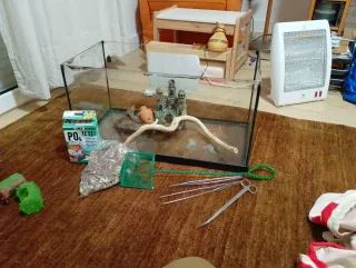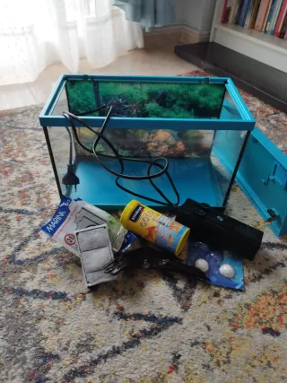 Acuario de cristal listo para montar tu propio ecosistema. - Incluye varios accesorios para su instalación y mantenimiento. - poco uso, casi nueva - incluimos tierra, medidores de Ph...