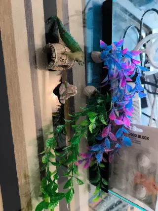 Se vende pecera en buen estado sin tapa con varios a - Pecera de cristal. - hojas de almendro indio para taninos - Kit de test de fosfatos - Red para peces. - Pinzas y tijeras para podar plantas - Troncos naturales - Adornos de resina