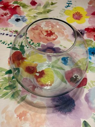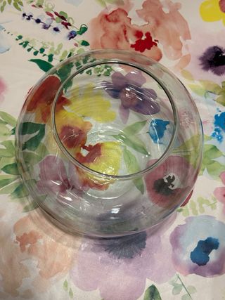 Jarrón con forma de pecera, ideal para decoraciones o pequeños acuarios. - Medidas aproximadas: 20 cm de alto x 20 cm de ancho. - Material: Cristal.