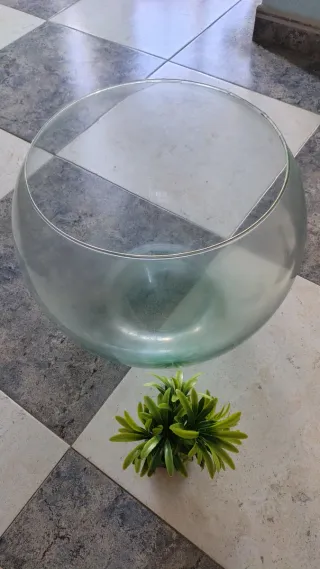 Elegante pecera de cristal,nueva, perfecta para decorar cualquier espacio. 3 litros. 30cm de diámetro. No se hace envío porque el cristal es muy fino.