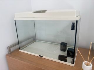 Pecera de 35 litros con varios accesorios incluidos. Lista para montar tu propio ecosistema. - Filtro interno. - Calentador. - Iluminación LED. - Grava decorativa para el fondo. - .... Tamaño 34 × 33 × 33 cm