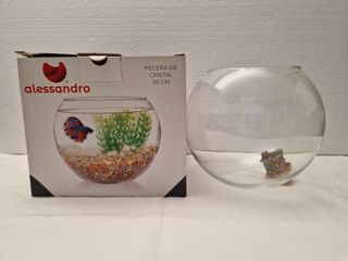 Pecera de cristal con forma redonda, ideal para pequeños peces o decoración. - Diámetro de 20 cm. - Diseño moderno y elegante. -Incluye una pequeña casita para decorar la pecera de regalo.