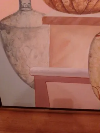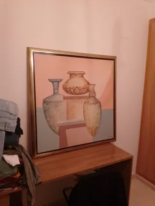 Precioso cuadro de bodegón pintado al óleo. - Representación de jarrones. - Marco de madera.