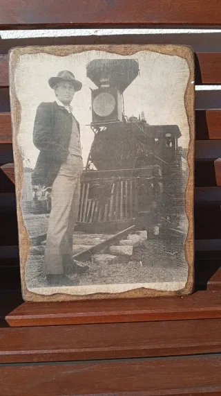 Cuadros realizados en madera con temática ferroviaria Renfe vintage. Son de secuencias de películas en las que el tren es protagonista. Tienen un tamaño aproximado de una hoja A4. Los hay de ese tamaño y otros ligeramente reducidos. Se venden por separado a 12€ la unidad o todo el lote por 60 euros. Tienen un acabado desgastado y lijado que se realizó para darles un efecto envejecido, de antigüedad, no acepto devoluciones por este motivo.