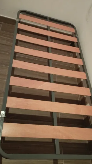 Base de cama con lamas de madera y estructura metálica. Recoger en Pedreguer - Tamaño: 90cm. - Lamas de madera. - Estructura metálica.
