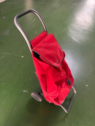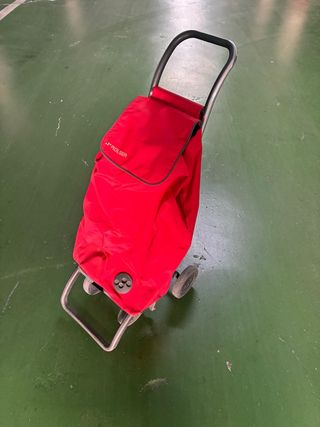 Carro de la compra de la marca Rolser, con un diseño práctico y funcional. - Bolsa de tela en color rojo. - Estructura metálica y ruedas de plástico.