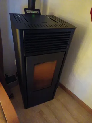 Estufa de pellets Invicta en color negro. - Modelo: Nuova Nola 7-10 / Nuova Lodi 7-10. - Código: 2203TMS 016759. - Fabricada en Italia, ensamblada en Serbia. - Poco uso en 4 años