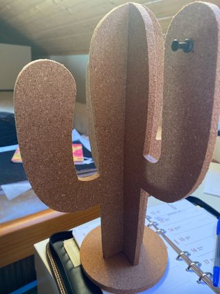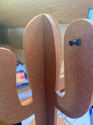 Original cactus de corcho, ideal para colgar fotos, notas, joyas o pequeños objetos. - Material: Corcho. - Diseño: Cactus. - Base estable.