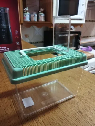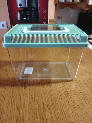 5 peceras. Recipiente versátil para pequeños animales. - Tapa con rejilla para ventilación. - Puerta superior para fácil acceso. - Base transparente para observar el interior.