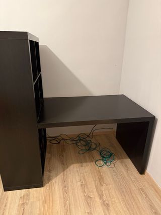 Mesa de escritorio diseñada para complementar los muebles KALLAX o EXPEDIT. - Acabado en color marrón oscuro. - Fabricada con materiales de calidad. Solo se vende la mesa, la estantería y la otra mesa no están incluidos en este anuncio.
