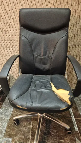 Regalo silla de oficina con un diseño moderno y funcional. Si alguien sabe tapizar, la estructura está bien. - Base de metal con ruedas. - Asiento y respaldo acolchados.