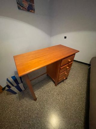 Elegante escritorio de madera con un diseño clásico y funcional. - Amplia superficie de trabajo. - Mueble con cuatro cajones. -Madera robusta y dudadera