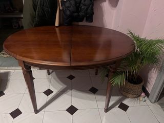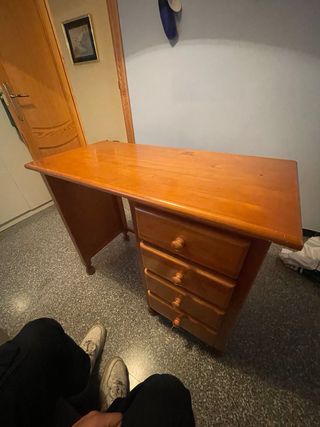 Mesa de madera para delante del sofà. Es abatible. - Estructura robusta de madera de pino. - Cuenta con un estante inferior para almacenamiento adicional. - Patas con detalles torneados. Si estàs buscando un conjunto comedor de mesa grande con 6 sillas, también tengo.