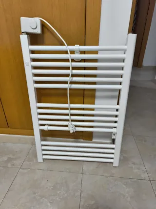 Secador de toallas eléctrico con control de temperatura. - Estructura de metal. - Elementos calefactores de plástico.