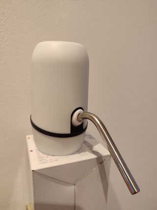 Dispensador de agua eléctrico con acabado blanco mate y tubo dispensador de acero inoxidable. - Diseño moderno y minimalista. - Ideal para botellas de agua de diferentes capacidades.