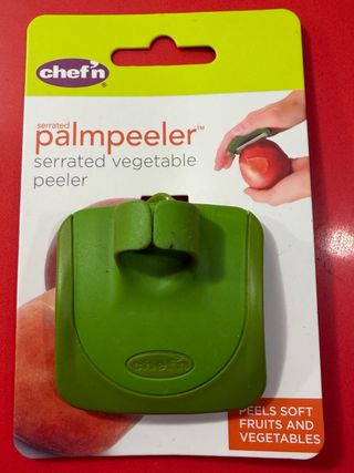 Pelador de verduras Chef'n con diseño ergonómico. - Cuchilla dentada para pelar fácilmente. - Ideal para frutas y verduras blandas.