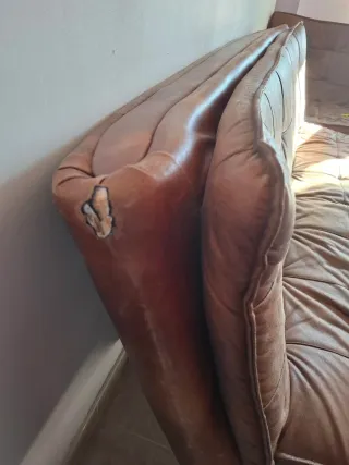 Sofá de tres plazas con asientos reclinables. Se encuentra en buen estado. - Tapicería de piel. - Color marrón.