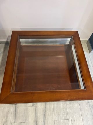 Vendo mesa de centro de madera maciza en muy buen estado. Diseño elegante y atemporal, ideal para salón. Características: • Estructura de madera maciza de alta calidad • Tapa de cristal encastrada (resistente y fácil de limpiar) • Repisa inferior de madera para revistas, libros o decoración • Acabado en tono cálido (miel / nogal claro) • Muy sólida y estable Mesa amplia y funcional, perfecta para combinar con muebles clásicos o rústicos, y a juego con vitrina del mismo estilo (ideal si se compran juntos).