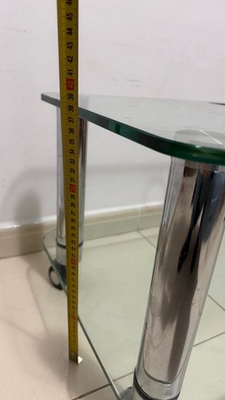 Mesa auxiliar cristal y metal con ruedas