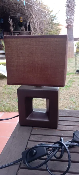 Lámpara de mesa cuadrada marrón