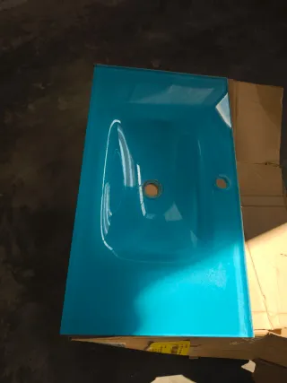 Lavabo de diseño moderno con acabado en cristal azul. !!!SOLO LA PIEDRA, SIN MUEBLE!!! - Material de cristal y piedra. - Color azul y transparente. !!!ESTA COMO NUEVO!!!