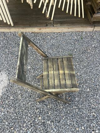 Silla plegable de madera Teka, ideal para exteriores. - Diseño rústico y funcional. - Perfecta para jardines o terrazas. Mas menos 80 unidades precio por unidad.