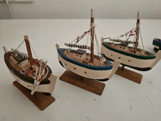 Conjunto de ocho barcos en miniatura. - Diseños variados. - Ideal para coleccionistas o decoración.