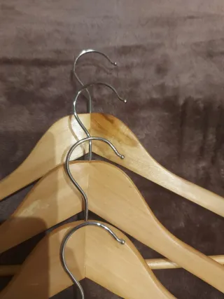 Conjunto de perchas de madera, perfectas para organizar tu armario. - Fabricadas en madera resistente. - Diseño clásico y funcional. - Ideales para todo tipo de prendas. Tengo muchas. Precio negociable.puedes recoger en aravaca o Bernabéu