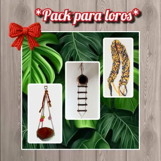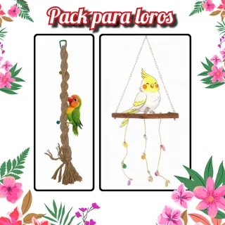 (HAGO ENVÍOS EN TODA ESPAÑA, ITALIA Y PORTUGAL). Pack de accesorios para loros, ideal para enriquecer su espacio. - Incluye un columpio de madera con adornos. - Incluye una escalera colgante con base de coco, «con materiales naturales». #«espiral de cuerda para pájaros agapornis loros periquitos ninfas carolinas pyrrhuras aves yaco guacamayo materiales naturales columpio percha»#