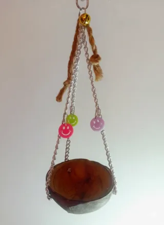 (HAGO ENVÍOS EN TODA ESPAÑA, ITALIA Y PORTUGAL) Pack de accesorios para agapornis, phyrruras... - Incluye comedero de coco. - Incluye juguete para colgar con cuentas de colores y sonrisas. - Incluye juguete de cuerda trenzada. #«espiral de cuerda para pájaros agapornis loros periquitos ninfas carolinas yaco guacamayo aves materiales naturales percha»#