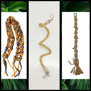 (HAGO ENVÍOS EN TODA ESPAÑA, ITALIA Y PORTUGAL) Pack de accesorios para loros o agapornis. - Columpio con cascabeles y cuentas. - Cuerda de yute con cuentas. - Cuerda trenzada de tela. #«espiral de cuerda para pájaros agapornis loros periquitos ninfas carolinas yaco guacamayo aves materiales naturales columpio percha»#