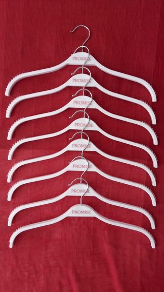 Conjunto de 8 perchas con relieve antideslizante en las puntas. - Diseño elegante y robusto. - Ideales para organizar tu armario. - Promise.