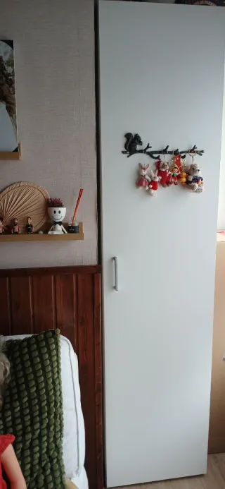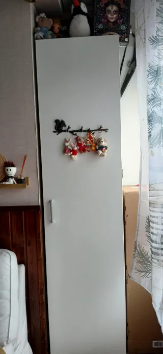 Armario de diseño moderno y elegante. Os quedan dos agujeros que podéis tapar con perchas adhesivas, algún adorno, o percha alargada como la que yo tenía. - Puerta con tirador metálico. - Acabado en blanco.