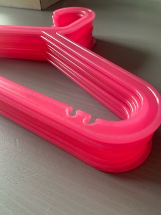 Perchas de plástico en color rosa para ropa de niñ@s. Son ideales para organizar el armario. - Set de 16 perchas. - Diseño ligero y resistente. - 29 cm de longitud