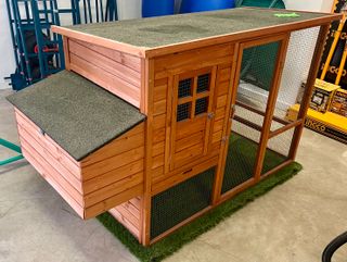 Caseta para aves de madera modelo Lyon de Gaun, consta de un parque y una caseta interior con perchas y bandeja colectora extraíble. el acceso se realiza mediante puertas tanto a la caseta interior como al parque. techo plano impermeable. cuenta con una rampa interior con la que los animales pueden acceder a la caseta superior. medidas (cm): 190,5 x 75,5 x 104,0h peso: 28,56 kg.