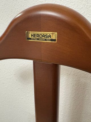 Galán de Noche HERDASA modelo Barrax, color Mogano, de madera de Haya maciza. Tiene un diseño práctico y funcional lo hacen el complemento perfecto para su dormitorio. Consta de una zona inferior donde poder dejar los zapatos, a su vez tiene una pantalonera para dejar cualquier prenda y en la parte superior tiene una percha clásica para dejar camisas o chaquetas de traje. Tienen 4 ruedas por lo que permite su desplazamiento sin ningún problema por la habitación.