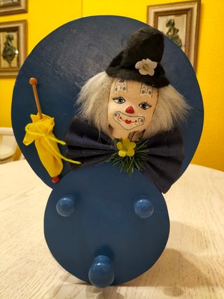 Muy bonita percha de madera para los más pequeños en buen estado ,tiene cuatro colgadores y dibujo de payaso ,medidas: 36 de ancho por 18 de alto