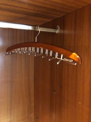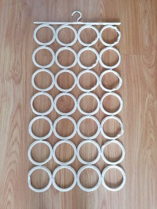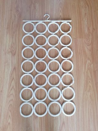 Percha de madera porta corbatas con alguna señal de uso, pero en buen estado, caben 24 corbats