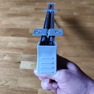 Sistema de riel extraíble para organizar perchas en tu armario, especialmente si es demasiado estrecho para montar una barra horizontal frontal. Cerrado mide 38 cm (perfecto para un armario de 40 de profundidad) Abierto mide 65cm - Fabricado en metal y plástico. - Diseño en color plata y negro.