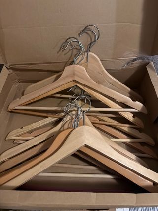 Lote de 10 perchas de madera para organizar tu armario por 5 euros en total - Material: Madera - Color: tonalidades Beige y marrón Hay varios lotes de 10 perchas, por si necesita más perchas