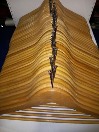 VENDO LOTES DE PERCHAS DE MADERA ANTIRROBO, CON SU ANILLA. EN PERFECTO ESTADO. TODAS IGUALES.. LOTE MINIMO DE 10 PERCHAS EN 15 EUROS. A 1,5 EUROS LA PERCHA CON SU ANILLA