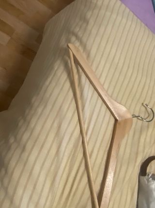 Set de cuatro perchas de madera, nuevas y sin estrenar. Perfectas para organizar tu armario. - Diseño elegante y natural. - Ganchos metálicos resistentes. Podemos quedar en Zaragoza.