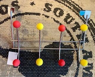 Este perchero es ideal para colgar abrigos, bolsos o toallas. - Diseño con bolas de colores. - Fabricado en metal y plástico.