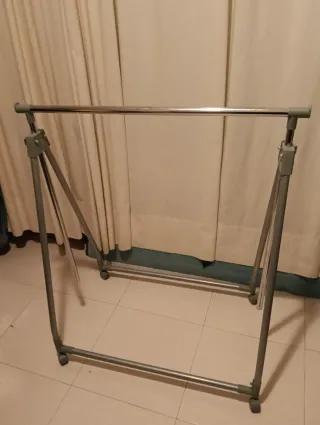 Burro para colgar la ropa extensible. Ideal para organizar tu armario o para tienda de ropa. Con ruedas más fuertes de lo normal y con freno, lo que evita que se mueva al cargarlo. El burro esta sin ningun rasguño se compró hace un año por 90€ y ha tenido uso comercial. Es mas grande de lo habitual. Medidas: 1,50 ancho x 50cm profundidad x 1,20 alto. Si se abre mide 60cm más de ancho, en total 2,10.