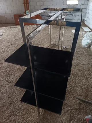Perchero con estantes de cristal y metal