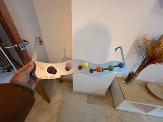 Perchero para colgar en puertas, con un diseño moderno y divertido, ideal para colgar bolsos, abrigos, toallas... - Estructura metálica. - Diseño con 10 bolas de colores para colgar - Medidas: Ancho 41cm, Alto 17cm y Fondo 12cm Se puede entregar en Guadalajara, Torrejón de Ardoz, Alcalá de Henares y Moratilla de los Meleros