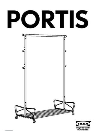 Práctico burro perchero de IKEA, modelo Portis. Consultar precio con envio incluido. SE ENVIA DESMONTADO. - Estructura de metal resistente. - Diseño abierto con barra superior y balda inferior. - Ruedas para facilitar su movilidad.